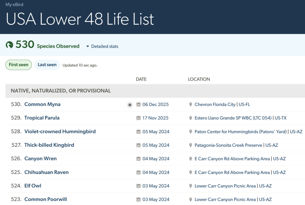 So how should record keeping be done? One way is to use a typical old-school handwritten version with field notes and drawings. This approach has a romanticism about it, but lacks some of the benefits of electronic versions. The major advantage of electronic record-keeping is that it allows searches for specific birds or locations or dates that are not possible with pen-and-paper methods. For example, I often like to search through old records for a single species, such as when and where I saw Pileated Woodpecker. Or if I’m wondering when to put out the hummingbird feeders, I can search for their typical arrival dates each year. Or when did I observe the peak migration of Broad-winged Hawks at the hawk watch? Although record keeping can be done using any electronic database, most birders now use eBird (ebird.org). We will learn more about eBird in a later post, but for now we will simply note that eBird has the advantage of very easy data entry without extensive typing, the ability to include photos or comments, and the sightings become part of the larger eBird database, contributing to ‘citizen science’. As a side benefit, eBird will automatically generate updated life lists, year lists, state lists, etc. Regardless of whether you keep track of your sightings through eBird or a different electronic database, you will benefit from keeping records and the ability to search through your previous field sightings.